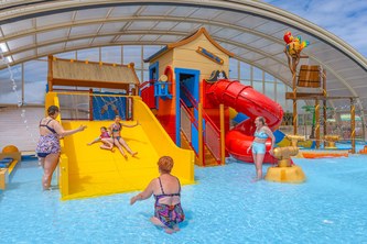 Sur place : piscine couverte chauffée, pataugeoires pour enfants, restaurant et bar-snack. Les hébergements en mobil-homes et chalets accueillent 3 à 8 personnes selon les modèles.