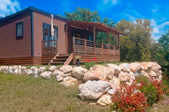 Sur place : bar-snack. Les hébergements en mobil-homes et chalets accueillent 3 à 8 personnes selon les modèles.